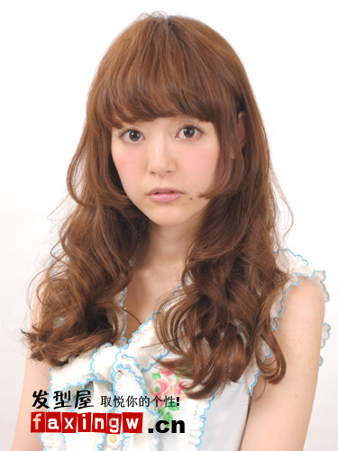 ,内卷的额头刘海,两边到下颚的发缕,使脸型显短,而肩部的蓬蓬质感发卷,显得大气同时带来几分的可爱。