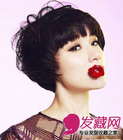 小编点评:细碎的齐刘海给人感觉清爽舒适,弧度修剪更是非常自然完美,凌乱的发丝有一种小女人慵懒随性的妩媚。黑色的自然发色更是简单大气,女人味十足。