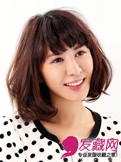 有效的缩短了脸型的长度,棕红色的发色更显时尚动感。