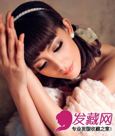 新娘婚纱照发型搭配齐刘海,可以让新娘的脸型看起来更加精致,齐肩的的