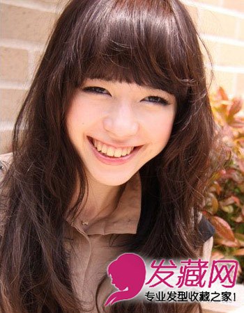 大片的刘海修饰了大圆脸,而蓬松的发丝,增加了灵动感。