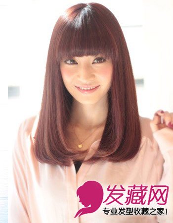 这款酒红色的淑女长直发造型,发尾内扣的设计,简单时尚。