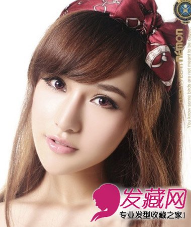 ,披肩发饰最具淑女气质的发型,半月弧形的斜刘海最适合长脸型MM来修饰脸型,搭配发带绑扎更显甜美可爱。