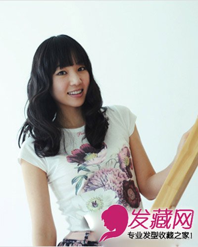 长发齐刘海,让五官摆放在最出众的位置。长卷发向外的弧度,不仅把脸蛋露出来,很好的修饰掉脸上的肉肉,还延伸至脖子,让人感觉更加青春甜美。自然齐刘海位置过了眉毛,修饰了脸型还让人有纯真的感觉。