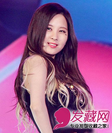 同样是一款颇受女生们欢迎的长发发型,咖色挑染发搭配偏分