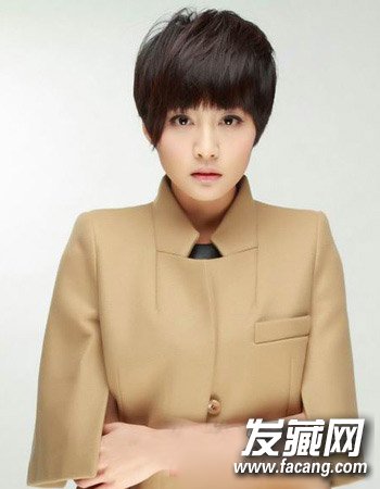 发厚重的碎发形式来剪裁的尖脸女生短发发型,同样是以中性风为主的一款造型,而配合清新的发色与头顶厚重的短发设计方法更显女生脸型的娇小感,而且还显一丝时尚干练风哦。