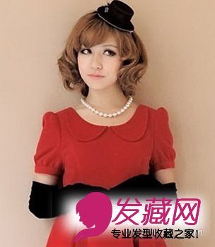 中短卷发可以营造出一个甜美优雅与气质的淑女形像,这款发饰与服装的搭配很有公主范哟,你也可以尝试。