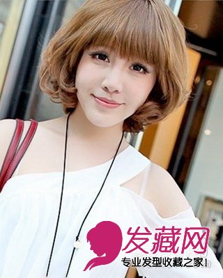 卷曲效果的女士短发发型图片,是2012短发最新发型,发尾内卷效果的发型设计,增加了整款发型的质感圆润效果,也让女生的头型更富饱满的感觉,减龄的齐刘海发型,有些碎剪的处理,衬托出一双清澈有神的大眼睛。