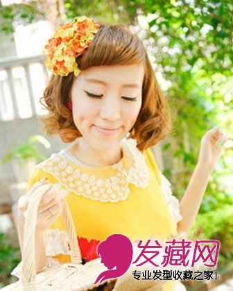 带有日系甜美风范的女生短发,很是甜美可爱,半月型斜刘海发型设计,展露出女生光洁透亮的额头,令女生的五官更显立体感觉,斜刘海利用花朵发饰固定在一侧,更显清新靓丽。