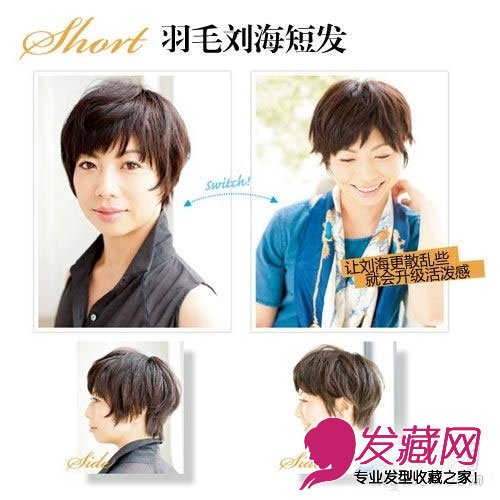 清爽的微卷短发,把发量集中在额头,修剪出层次感刘海,避免使短发形成死板、男性化的感觉。秀发在发梢处微微内卷,很好地修饰脸型,以及烘托整体气质。柔和光泽感的发色使有点强硬感的超短发变得知性干练!