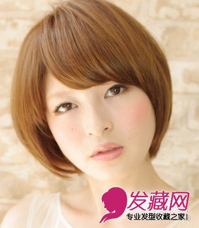编辑点评:简单的波波头短发发型,眉与眼之间长度的齐刘海微微侧拨,柔和脸部线条。