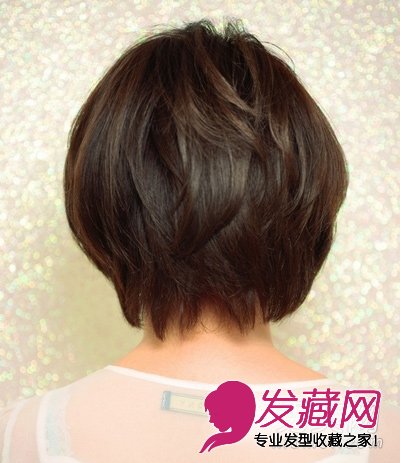 从背面看,这款发型的重点在于修剪出层次感,并在发尾出烫内卷,打造出完美头型。