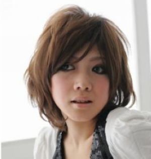 十分俏皮可爱的一款短发,短短的齐刘海,并不会造成你的脸蛋横向拉伸的效果,空气感的发卷反而让脸型有变小的视觉效果哦。