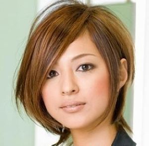 不对称刘海带给人非常强烈的个性印象,两侧发丝形成一个朝内的拱形,发尾内弯,是款体感强烈的变形BOB头。