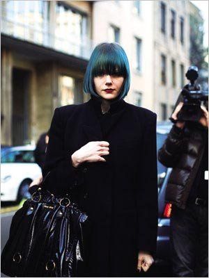 如此冷艳的发色,不论走到哪里都是路人注目的焦点。金属色手袋 为全身增添时尚气氛。