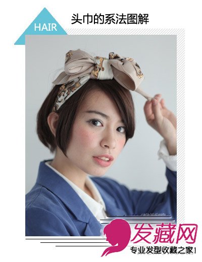 短发妹子必备 素色头巾在头顶绑成一个蝴蝶结造型