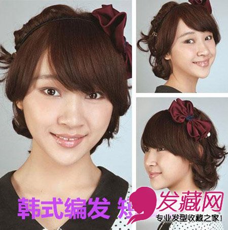 以自然唯美的韩式发型呈现给大家,这款发型是一款减龄发型,用刘海和饰品与俏皮编发的结合,让原本枯燥的短发更具有活力,只要掌握好这款发型的编发手法和发型要点,你就是自己的发型师,同时是短发每天轻松换发型。