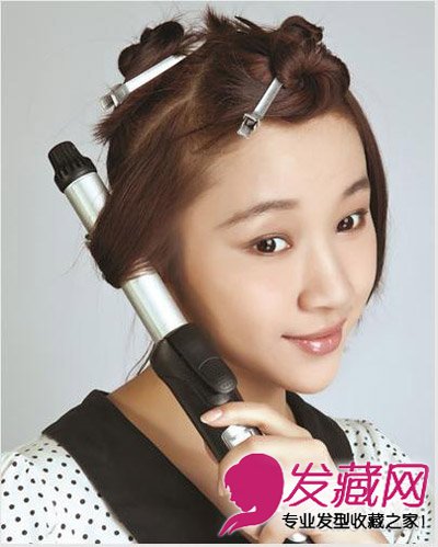 将分区以外的头发用电卷棒夹卷,两侧向后分大片发片自然卷出纹理,后区向下自然卷出纹理即可。