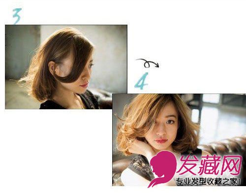 3.取出卷发器,刘海沿着脸弯曲,这样的情况下,刘海造型基本完成。