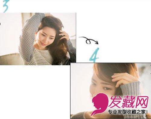3.再换用手来梳理头发,把头发撇过一侧。把一侧6:4分的头发拉伸到相反的方向。