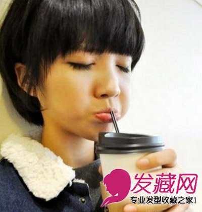 乌黑发色的短短发型,萌萌的碎发的齐刘海设计,看起来纯真又显可爱,搞怪的女生表情,俏皮精灵的呀!