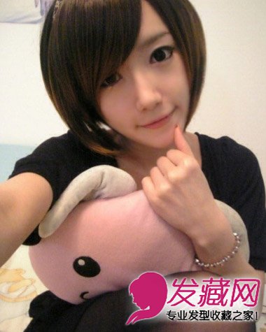 圆弧形的短发发型,视觉上有着超瘦脸的功效,碎斜分的刘海设计,夏季又能演绎出温婉可爱小女人味道。