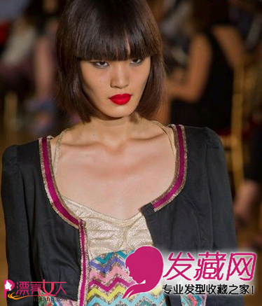 相比之前同样蓄着BOB发型的模特,这个姑娘给我们的感觉就有些不同了。她不是那种俏皮之感的持有人,反而却有着经融女子、商界女强人的味道,也许这和她凌厉的眼神有关。