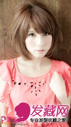 编辑点评:这款圆弧形状的齐刘海对于大眼MM来说能瞬间增加萌感,而两侧卷曲的中短发却令整体发型不会显得过于幼稚,多了几分女人味!