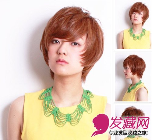 发型点评:略长的刘海遮盖住眉眼营造出个性不羁的气质。染上华丽的棕红色,摩登个性。