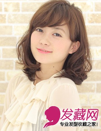 蓬松的齐肩卷发造型颇显甜美气质,一款