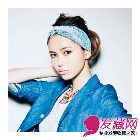 高耸的马尾活力十足,前额的刘海用头巾固定起来,摩登范儿十足。