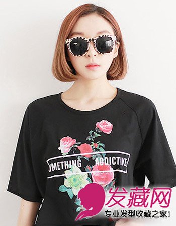 是不是也很迷人呢?同样是清新温暖的棕橘色染发,与内扣式的发梢造型相搭,简单修颜,配合一个大框的墨镜更显时尚街拍风,精简干练的形象也是深入人心的哦。