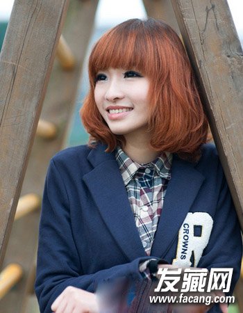 搭配齐刘海瞬间减龄,蓬松烫发也超显甜美感,搭配格子衬衫更显学生气。