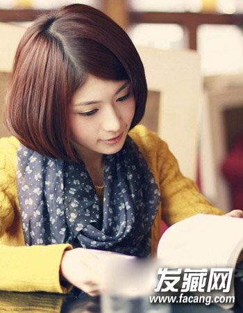 短发学生妹必备的齐肩短发发型,甜蜜的棕色很是温柔,偏分的长刘海很好的修饰了脸型,这样低头的时候瞬间颜值翻倍。