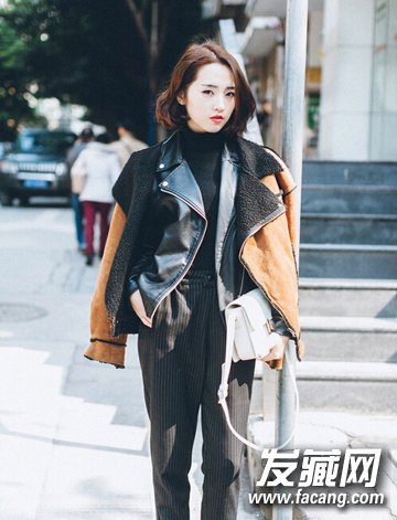 3、气质真的是个很悬的东西,简单的中分刘海,烫卷中短发也能演绎出大牌范,红棕色