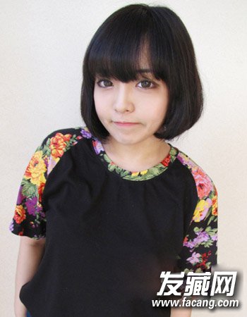 可爱的短发内扣梨花头发型是小脸妹子们的首选 ,内扣的空气刘海打造出别致的气质感的一面,造型简单而且大方, 发色自然颇显校园青春范。