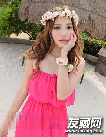 发色在阳光发出夺目的光彩,衬托的女生肤色格外的娇嫩迷人,美丽的花环也为整个造型增色了不少。
