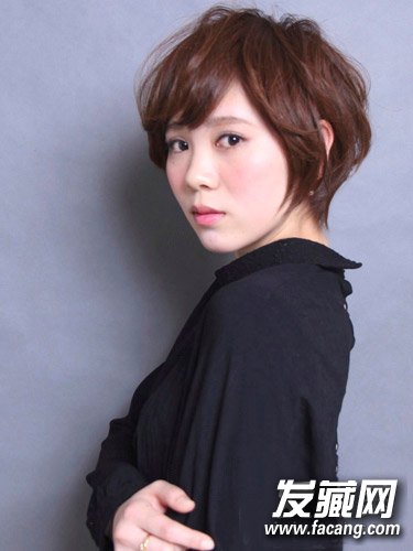 的修颜效果是不是很好呢,利用蓬松式的蓬松式的棕色烫发,再与厚重的斜刘海造型相搭修颜的同时更烛圆脸女生的可爱甜美风。