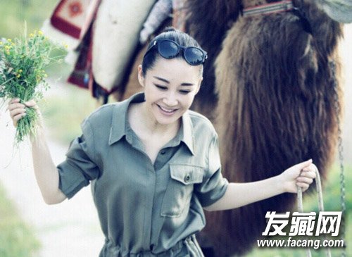 许晴写真造型,长发扎成露额马尾辫,ALLBACK造型搭配墨镜酷劲十足。休闲装扮,森女范十足。