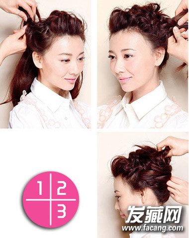 Step1:将整个头发分成不同绺,先从头顶上方的头发开始,变成松松的辫子。