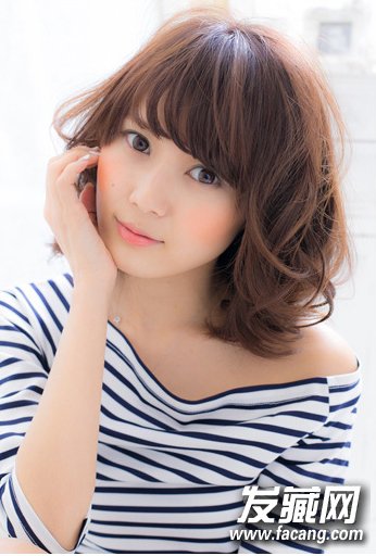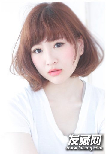 萌萌的刘海搭配外巧发丝修饰脸型,蓬松的中短造型在视觉上增添瘦脸效果,同时也让造型时尚有个性,展现妹子魅力。