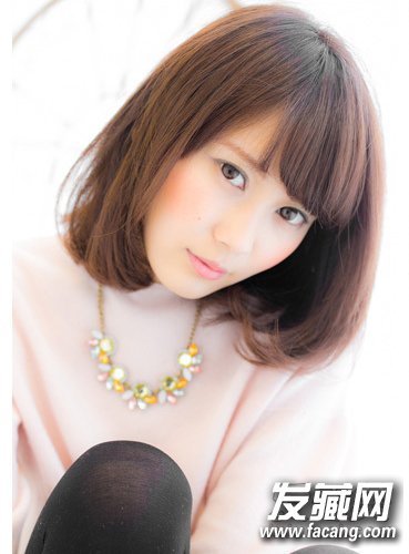 内扣的直发波波头不仅能修出小脸,让妹子变得可爱甜美,且棕色头发让肤色看起来更加的粉嫩柔和。