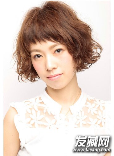 不规则短刘海搭配蓬松短烫发让妹子时尚度有所提升,展现出自我个性。