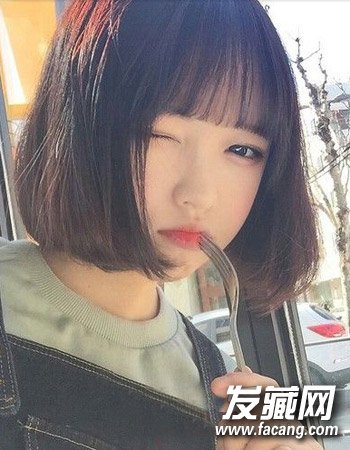 女生中短发发型图片 韩式黑色中短发波波头发型