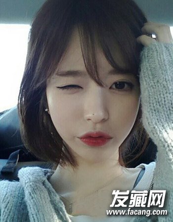 的搭配,柔顺的薄刘海与发尾的内扣形成别致的时尚感来。
