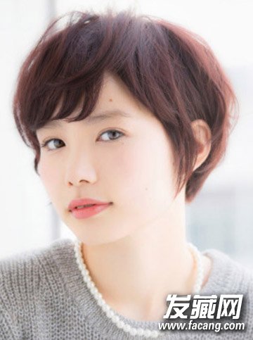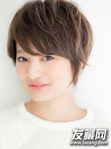 发型点评:厚重的长刘海遮盖住额头,隐约露出的白色皮肤清爽可爱。立体感剪裁的短发露出脖颈,清爽感十足。