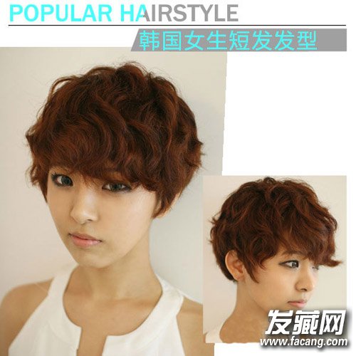 发型非常创新,是一款清爽的短发。头顶部分的位置发量较多,因为因要打造大波浪的卷度,从中间延伸到两鬓的位置。后脑的位置则是利落的碎发,发型造型独特彰显个性。