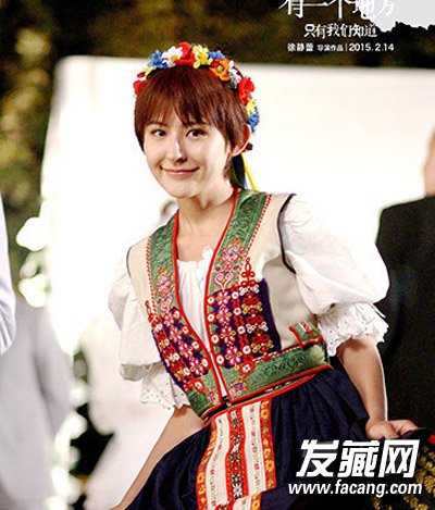 电影中的短发造型,短发配上花环可爱乖巧,深栗色