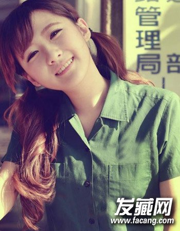可爱的卷发双马尾也是不错的选择哦,斜刘海与双马尾发型的设计勾勒出别致的时尚感来,而且深棕色时尚有个性。