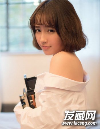 内扣的空气刘海与中短发搭配起来勾勒出无比的时尚感来,而且发尾的小卷